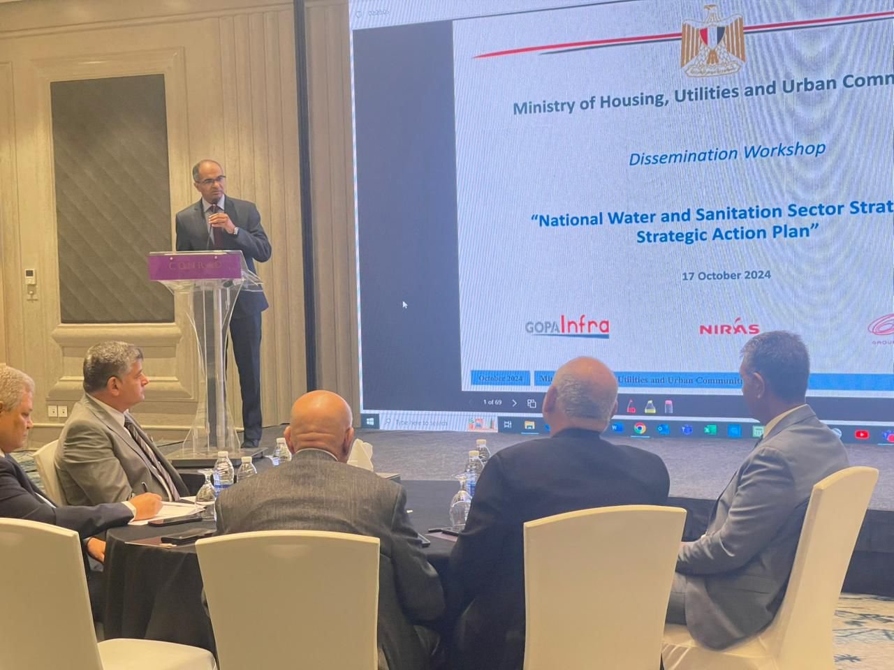 جاء ذلك بحضور الدكتور محمد حسن، رئيس جهاز تنظيم مياه الشرب والصرف الصحي وحماية المستهلك، والمهندس أحمد عبدالقادر، رئيس الجهاز التنفيذي لمياه الشرب والصرف الصحى، والمهندس ممدوح رسلان، رئيس مجلس إدارة الشركة القابضة لمياه الشرب والصرف الصحي، والدكتور عبد القوي خليفة، وزير المرافق السابق وخبير مياه الشرب والصرف الصحي، ونواب رئيس مجلس إدارة الشركة القابضة والهيئة القومية لمياه الشرب والصرف الصحي، وممثلي شركاء التنمية من البنك الدولي، والاتحاد الأوروبي، والوكالة الأمريكية للتنمية، وبنك الاستثمار الأوروبي، والبنك الأوروبي لإعادة الإعمار والتنمية، والوكالة الفرنسية للتنمية، وبنك الائتمان لإعادة التنمية، والمؤسسة الألمانية للتعاون الدولي، وبنك التنمية الأفريقي، ومؤسسة التمويل الدولية، وجمعية البلديات الهولندية، والبنك الإسلامي للتنمية، ومنظمة الأمم المتحدة للتربية والعلوم والثقافة.