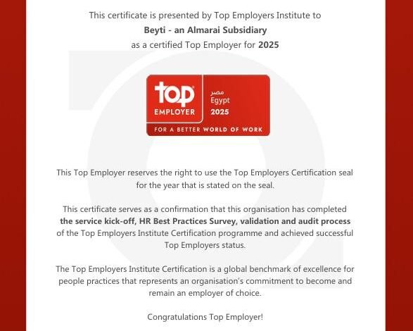 أعلنت مؤسسة “Top Employers Institute” العالمية عن قائمة الفائزين لعام 2025، وتم اعتماد بشركة بيتي، إحدى شركات المراعي، كـ “أفضل جهة عمل””Top Employer” في مصر. الحصول على شهادة “أفضل جهة عمل” يعكس التزام الشركة بتوفير بيئة عمل متميزة، ويظهر ذلك من خلال تطبيق سياسات موارد بشرية استثنائية وممارسات فعّالة للموظفين.