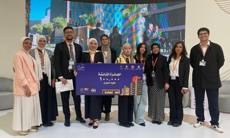حصد فريق جامعة النيل المركز الثالث في مسابقة “عقول” لحلول الهندسة المستدامة” التي أطلقتها وزارة الإسكان والمرافق والمجتمعات العمرانية بالتعاون مع وزارة التعليم العالي والبحث العلمي ونقابة المهندسين خلال الدورة الثانية عشرة من المنتدى الحضري العالمي (WUF12).
